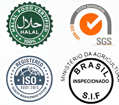 upholds strict quality and food safety standards, consistently complying with both national and international regulations. These include HACCP (Hazard Analysis and Critical Control Points), GMP (Good Manufacturing Practices), PPHO (Standard Operating Hygiene Procedures), and specialized procedures such as Halal slaughter for Muslim consumers.